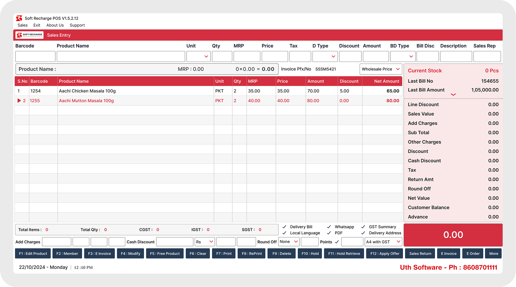 Soft Recharge is a user-friendly billing software designed for retail and food businesses. It helps you manage invoices, inventory, GST filing, sales tracking, and customer management with ease.